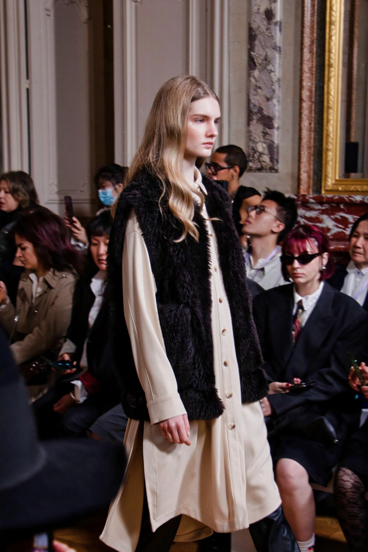 品牌精选羊毛羊绒、醋酸、有机棉麻等高端天然时装面料,以大地色系为基底,点缀灰绿、陶土红等低饱和有彩色,传递宁静安稳的氛围;立体压褶、面料再造、可转换设计等工艺,让服装兼具雕塑感与实用性。从廓形大衣、可拆卸皮草外套,到职场旅行两用套装,如月设计覆盖多元场景,既满足都市精英的情感依托需求,也契合独立女性对风格与舒适的追求,精准承接不同客群偏好。