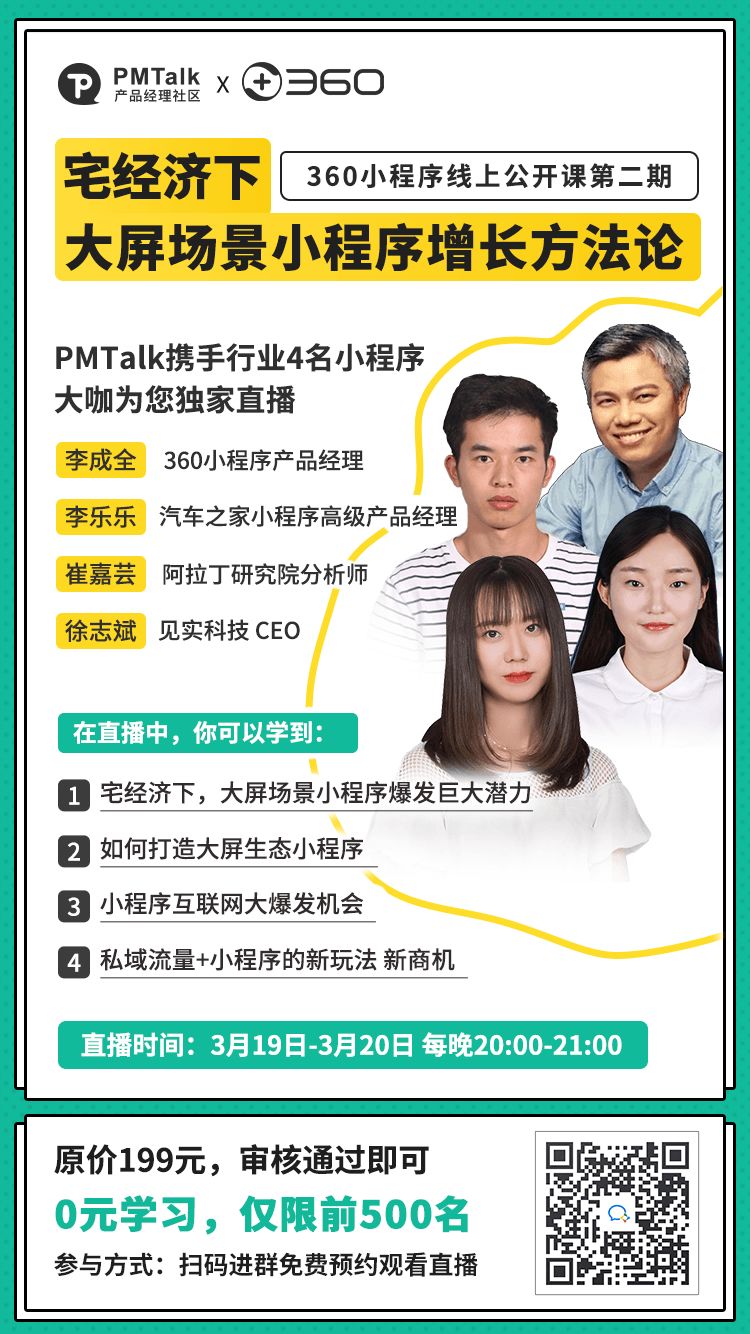 宅经济下,小程序表现如何?这一波商机里面有哪些可以让你掘金的地方,再不把握,你就out啦!PMTalk携手360推出线上公开课,产品运营知识免费学!